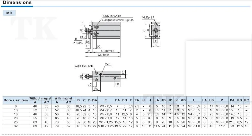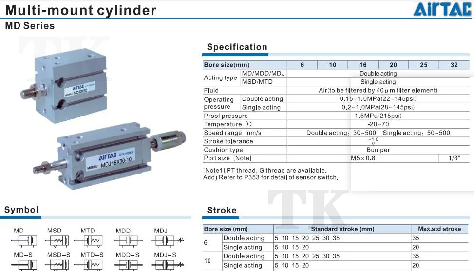 AirTAC MD Series MD10X5X10X15X20X25X30X35X40 Multi Mount Pneumatic Air Cylinder