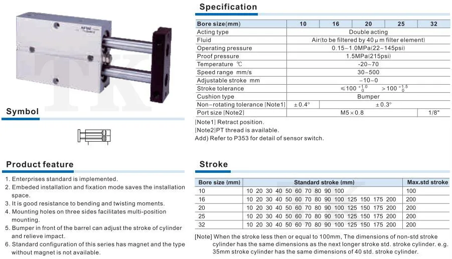 AirTAC TN TN10 Series Double Shaft Twin Rod Pneumatic Air Cylinder