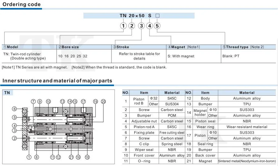 Double Shaft TN Series AirTAC Twin Rod Pneumatic Air Cylinder