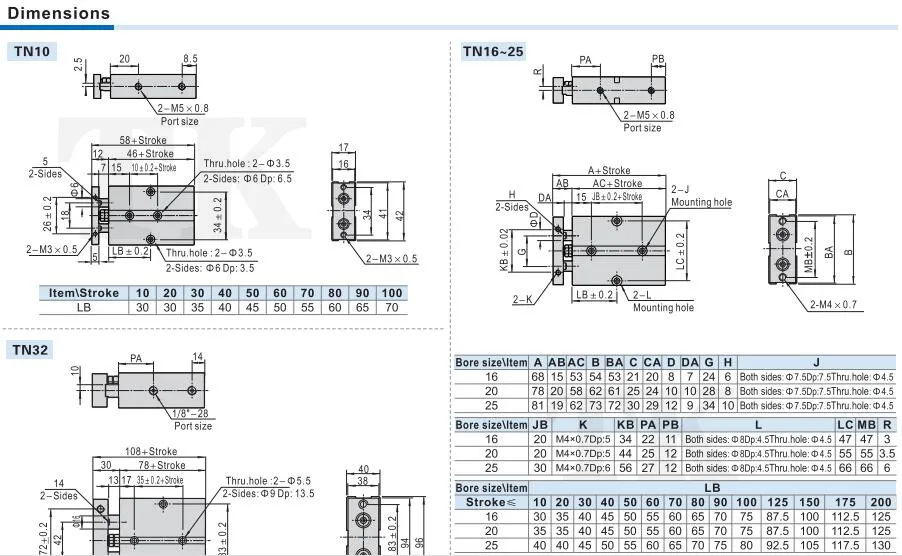 Available bore sizes in TN series typically include: